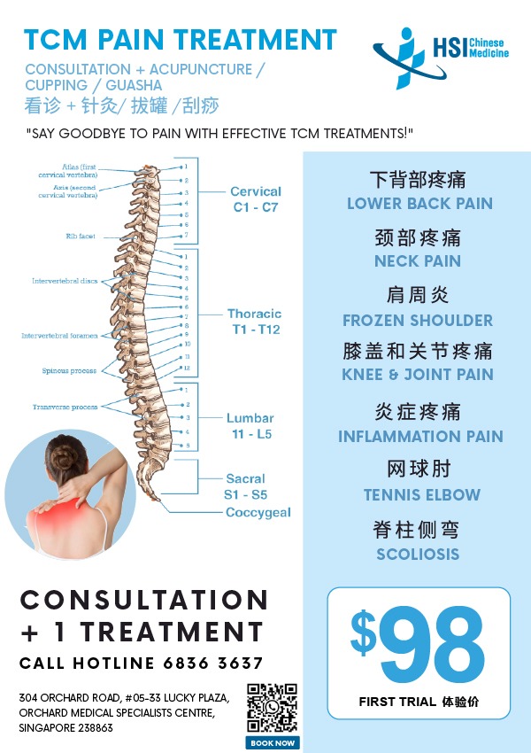 In Traditional Chinese Medicine (TCM), pain management is done with a combination of various methods can be used to manage pain symptoms. These include acupuncture, cupping therapy, Tui Na and Chinese herbal medicine.